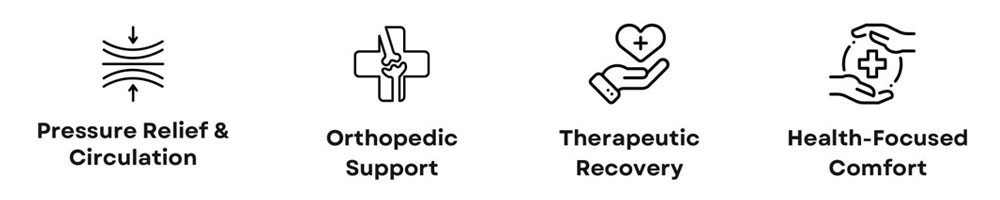 SGR Comforts, our Medicated Mattresses are specially designed to provide therapeutic comfort and support for individuals with back pain, joint issues, or other orthopedic concerns. Crafted with advanced medical-grade materials and expert ergonomics, these mattresses ensure proper spinal alignment, pressure relief, and improved blood circulation during sleep. Each layer is engineered to offer firm yet gentle support, reducing strain on muscles and joints while promoting natural posture.